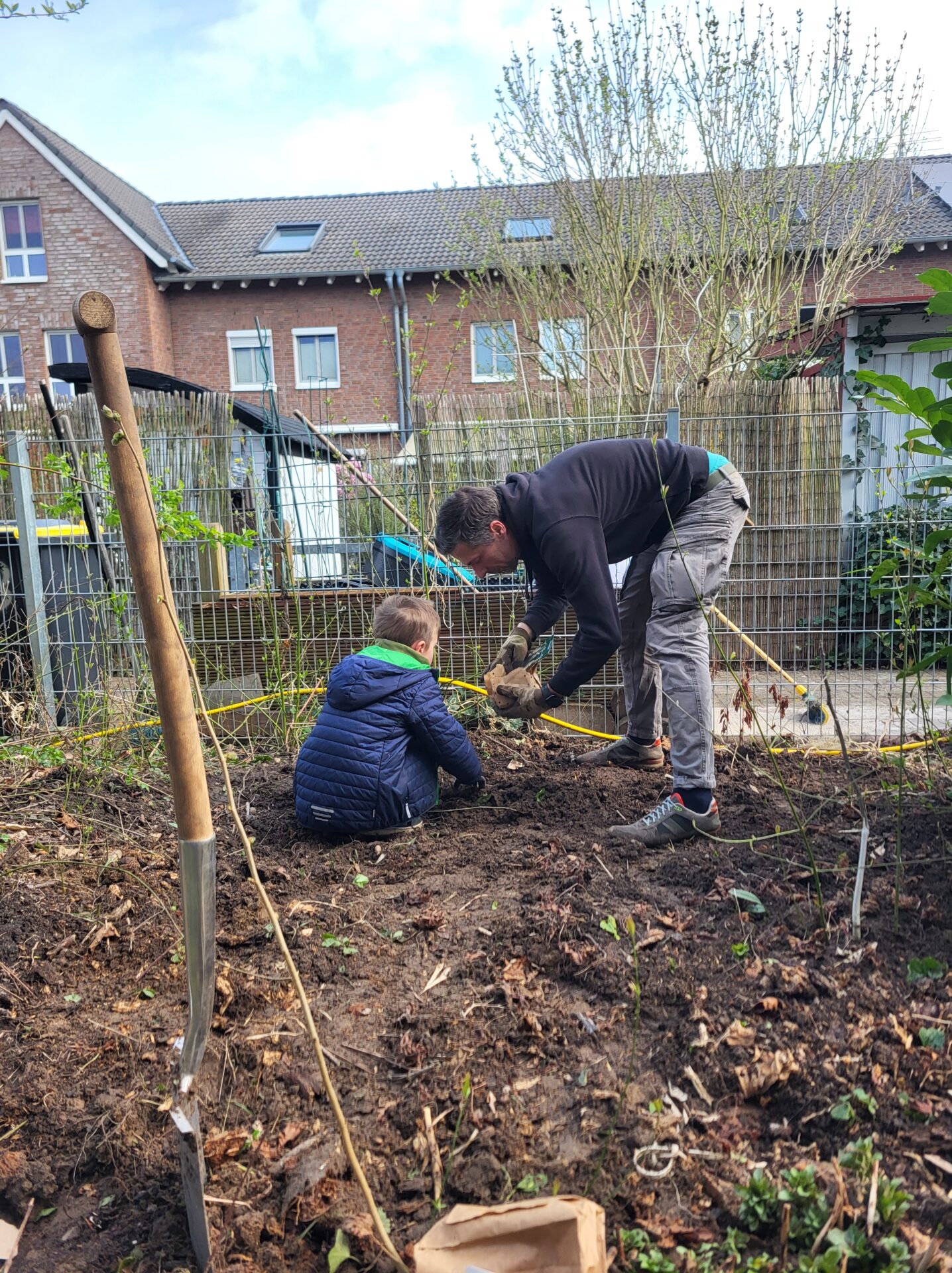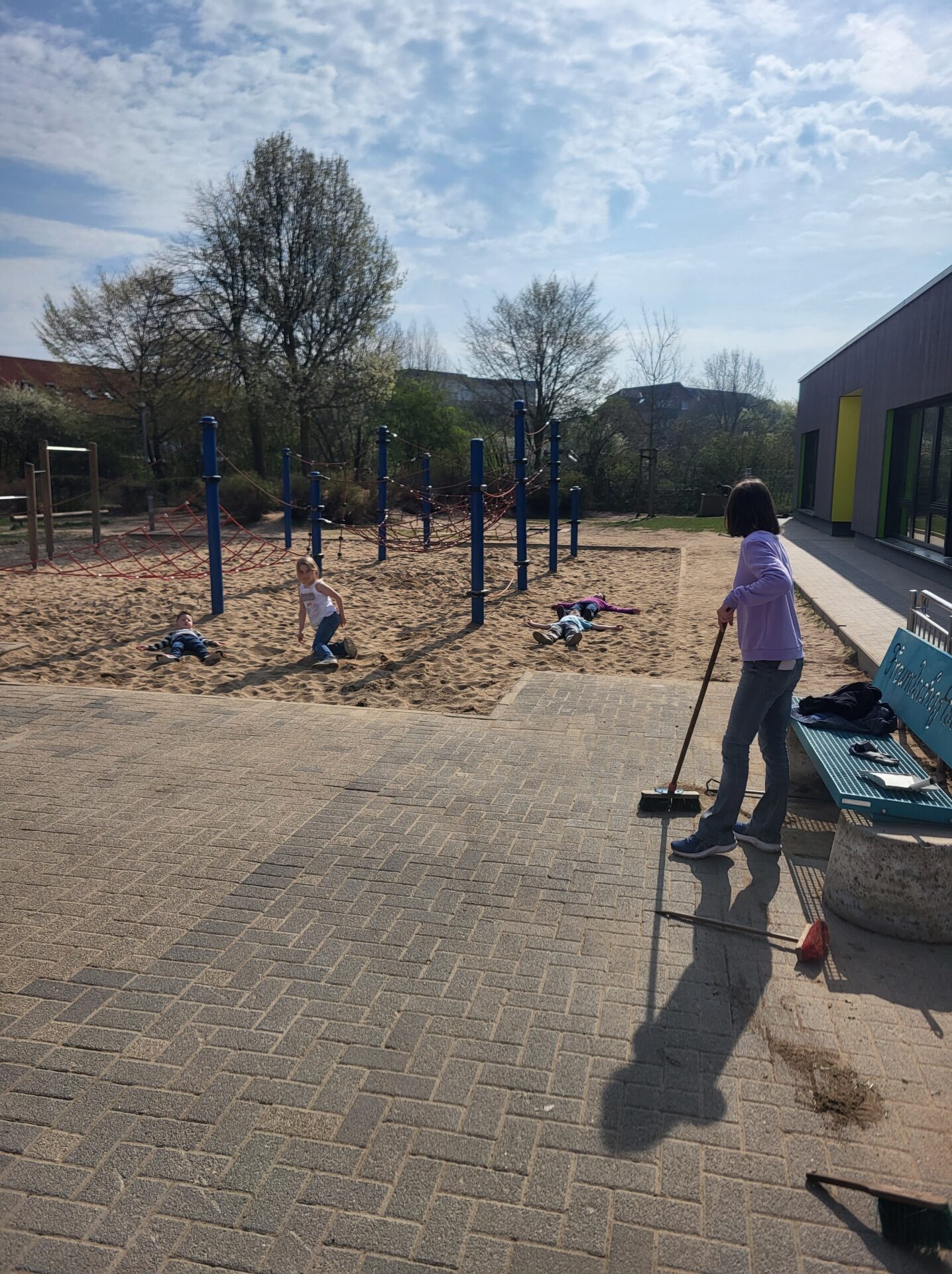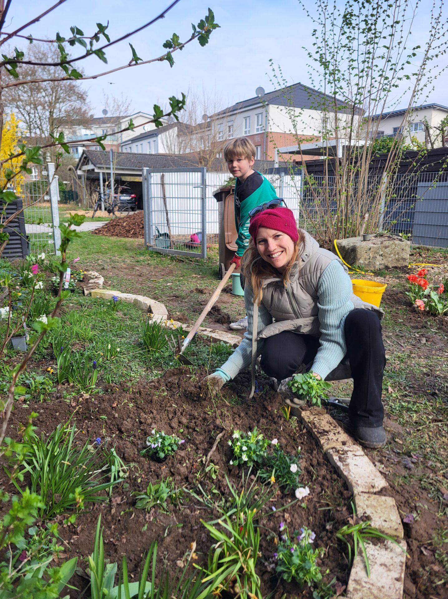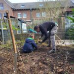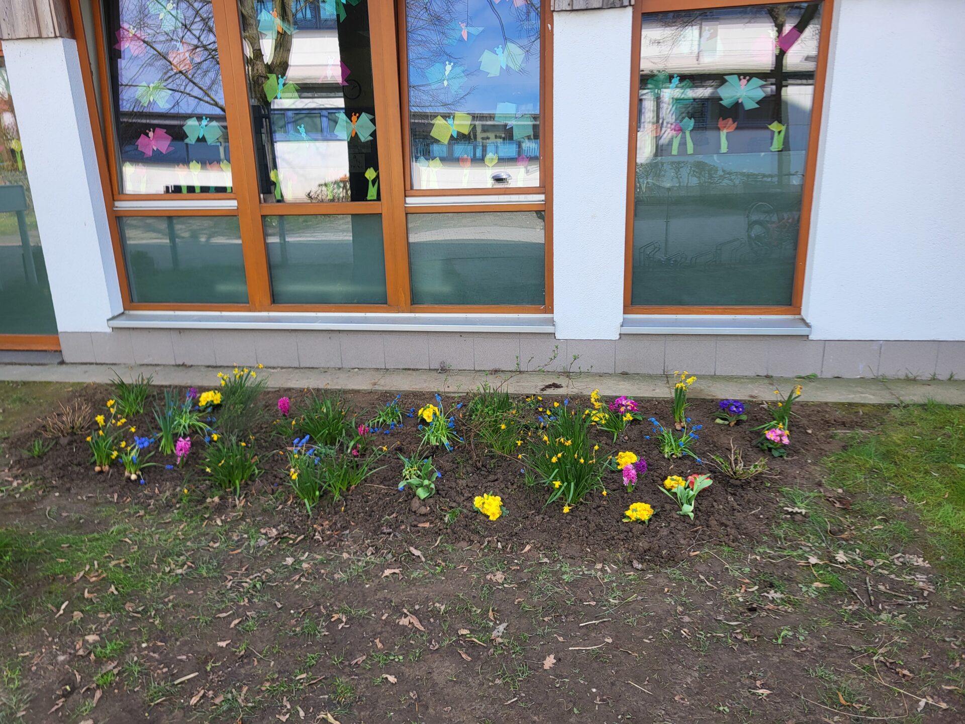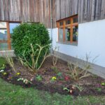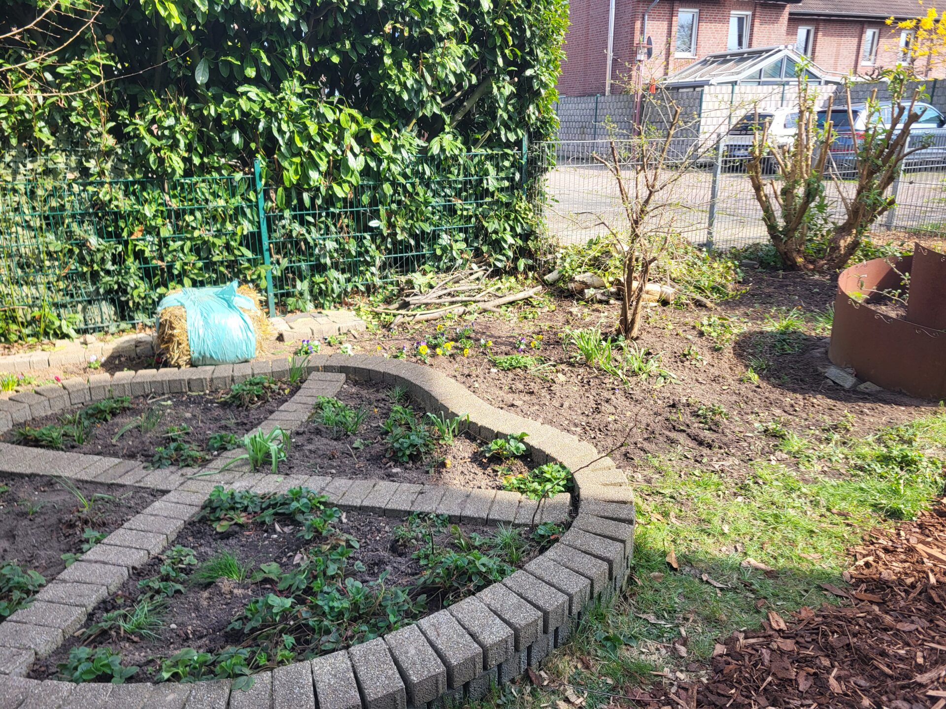 Dank vieler engagierter Eltern passiert auch auf dem Außengelände viel: Unser Igelhaus hat einen ruhigeren und einladenderen Platz im Garten gefunden. Die Gartenwege wurden mit Mulch bedeckt, damit der Garten auch bei schlammigem Wetter gut nutzbar bleibt. Außerdem wurde der Gartenschuppen ausgeräumt und neu organisiert, um einen besseren Überblick über alle Materialien zu schaffen – und ganz nebenbei wurde dabei auch die Zahl der Krabbeltiere im Häuschen reduziert. Der Bambus als invasive Pflanze wurde entfernt, und die Kräuter in der Kräuterschnecke wurden zurückgeschnitten. Viele Blumenbeete wurden von Unkraut befreit, Stauden zurückgeschnitten und neue Blumen gepflanzt.  Beide Gemüsegärten wurden umgegraben und der Boden aufgelockert, um ihn optimal auf unsere erste Pflanzung am 30. April im Rahmen der GemüseAckerdemie vorzubereiten. Der Schulhof ist nun gefegt, die Spieleausleihe ist aufgeräumt… es ist toll, was alles geschafft wurde.