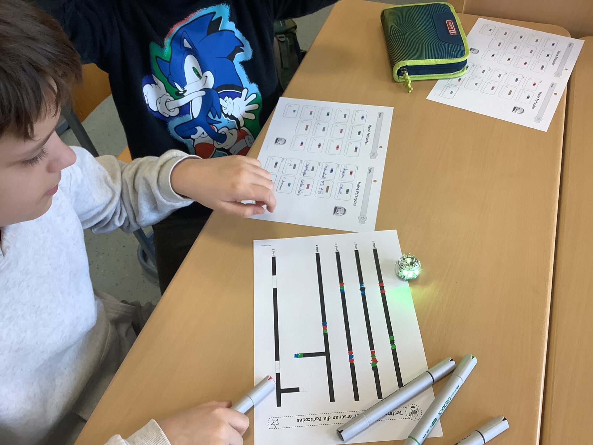 In der AG lernen die Kinder spielerisch und kreativ die Welt des Programmierens kennen. So programmieren sie beispielsweise unsere beliebten „Bee-Bots“, Lernroboter in Bienenform, oder beschäftigen sich mit dem kleinen Lernroboter „Ozobot“, der selbstständig dunklen Linien folgen und mit analogen Farbcodes oder digital gesteuert werden kann. Außerdem sammeln die Kinder mit der App „Scratch Junior“ Erfahrungen in der Blockprogrammierung, indem sie eigene kleine Geschichten programmieren.