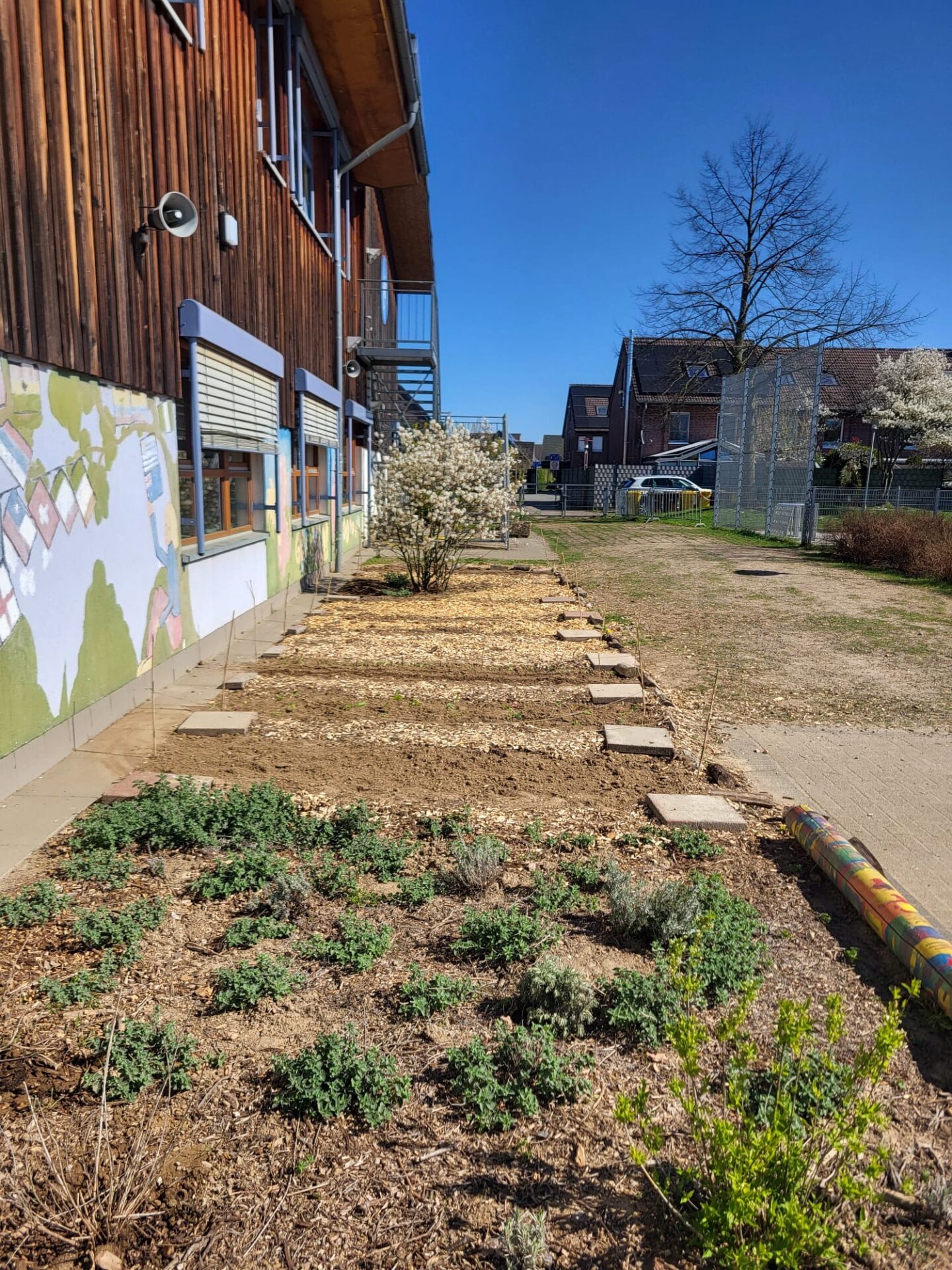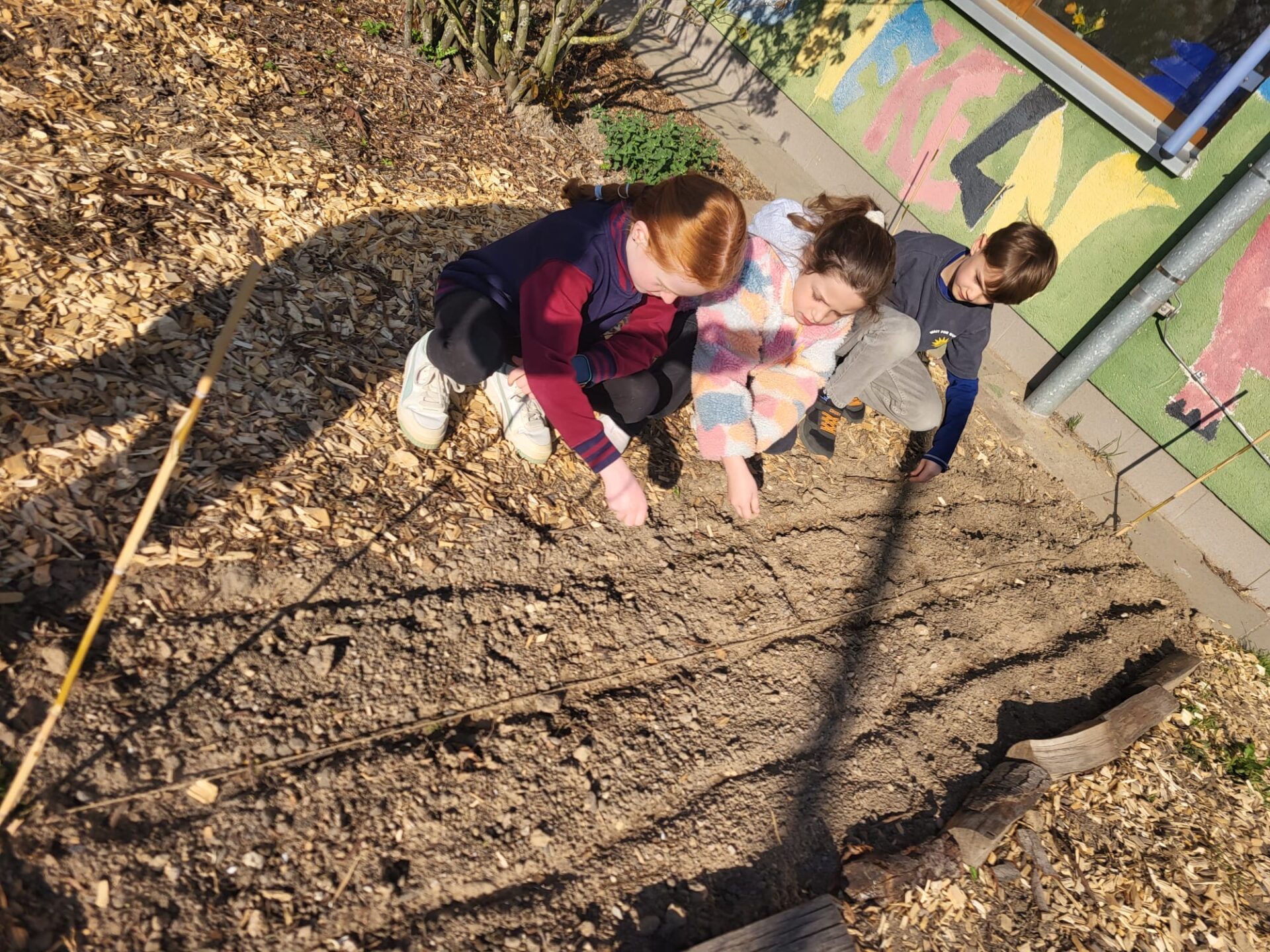 Mit den Kindern des dritten Jahrgangs wird hier in Kürze von der Saat bis zur Ernte der Pflanzzyklus praktisch erarbeitet und unterrichtlich begleitet. So lernen die Schülerinnen und Schüler unmittelbar, wie aus einem kleinen Samen eine knackige Möhre wächst – und wie lecker diese schmeckt!