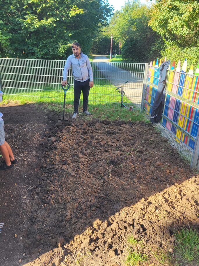 Am Freitag, den 19.09.2025, fand zuletzt eine Schulgartenaktion, bei der engagierte Eltern, Kinder und Lehrer:innen fleißig mitgeholfen haben. Es sind zwei neue Gemüsebeete entstanden, wodurch im kommenden Jahr im Rahmen der GemüseAckerdemie die doppelte Menge an Gemüse für die Ernte angebaut werden kann. Es wurden neue Beete ausgehoben, Hochbeete an neue Standorte versetzt und lästiges Unkraut in den Blumenbeeten entfernt. Herzlichen Dank an alle kleinen und großen Unterstützer!