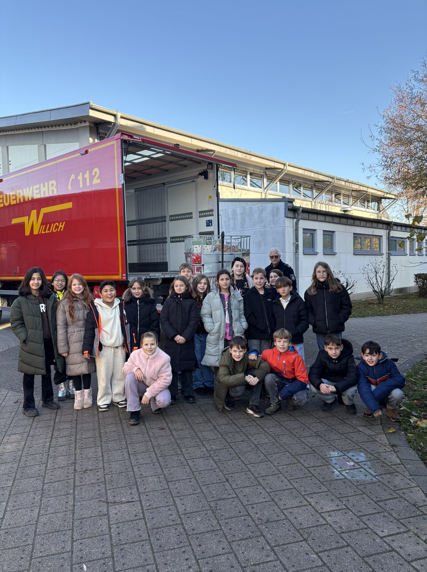 Am 11.11.2025 besuchten die Klassensprecherinnen und Klassensprecher der vierten Klassen zusammen mit Frau Münch-Grevel das Haus der Lebenshilfe in der Nachbarschaft, um einen großen Weckmann vorbeizubringen. Alle haben sich sehr gefreut und zugesichert, am Abend den Martinszug vom Wegrand aus anzuschauen und die Laternen zu bestaunen. Dieser Besuch ist eine liebgewonnene Tradition zur Martinszeit.